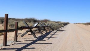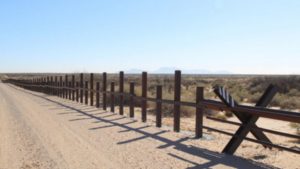 在新墨西哥州南部边境、靠近圣特雷莎入境口岸的沿线,是一条长约20英里的车辆阻隔带。