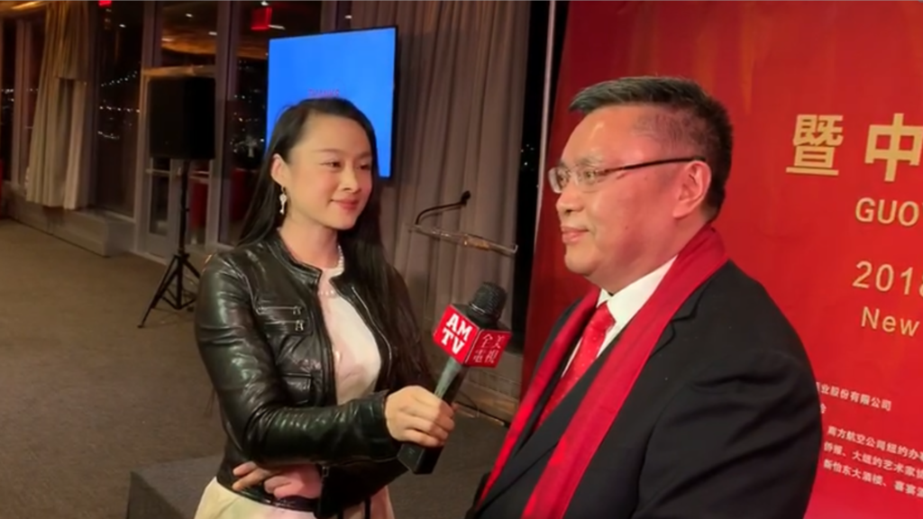 全美电视台纽约特邀记者在活动现场采访团长倪从春