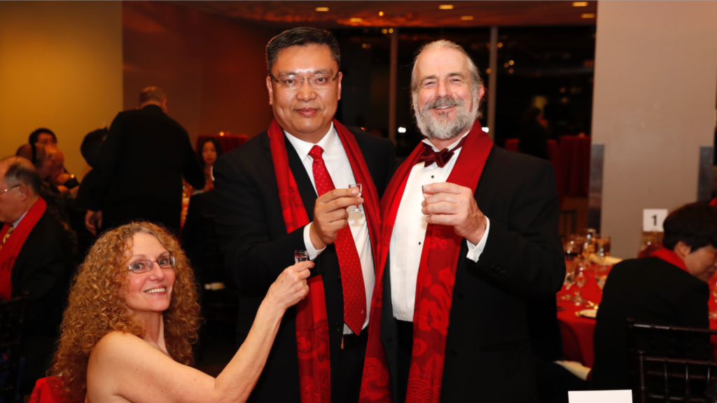 在12月5日,由江苏今世缘酒业股份有限公司赴美代表团还受邀参加了联合国记者协会(UNCA)70周年颁奖酒会,在酒会中,他们听取了秘书长精彩的讲演,观摩了秘书长给好莱坞明星及杰出大记者的颁奖,秘书长古特雷斯很高兴在酒桌的与代表团团长倪从春干杯,整个晚宴酒会体现出“与世界结缘、为可持续发展干杯”的快乐气氛。