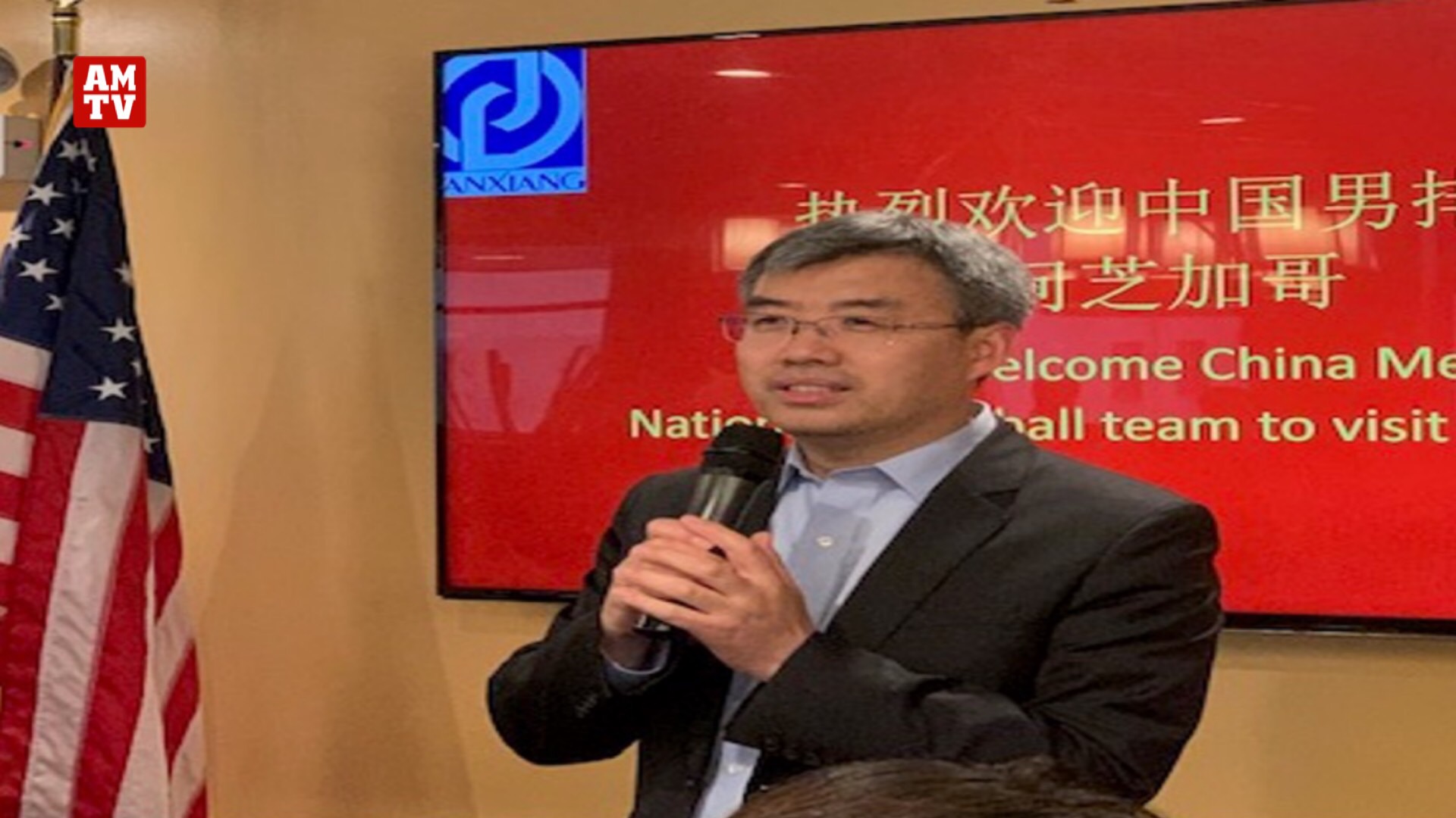 万达集团芝加哥公司财务总监贺鑫主持了招待会晚宴,中国国家体育总局排球管理中心国家队管理部副部长,国家男排领队盖洋代表中国男排发言。