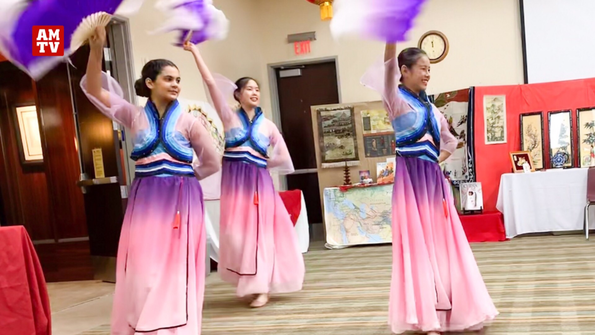 李美鸰舞蹈团表演民族舞蹈扇舞。