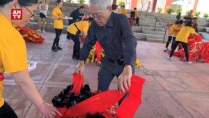 南海岸中华文化协会会长陈景星为瑞狮点上象征吉祥的朱砂