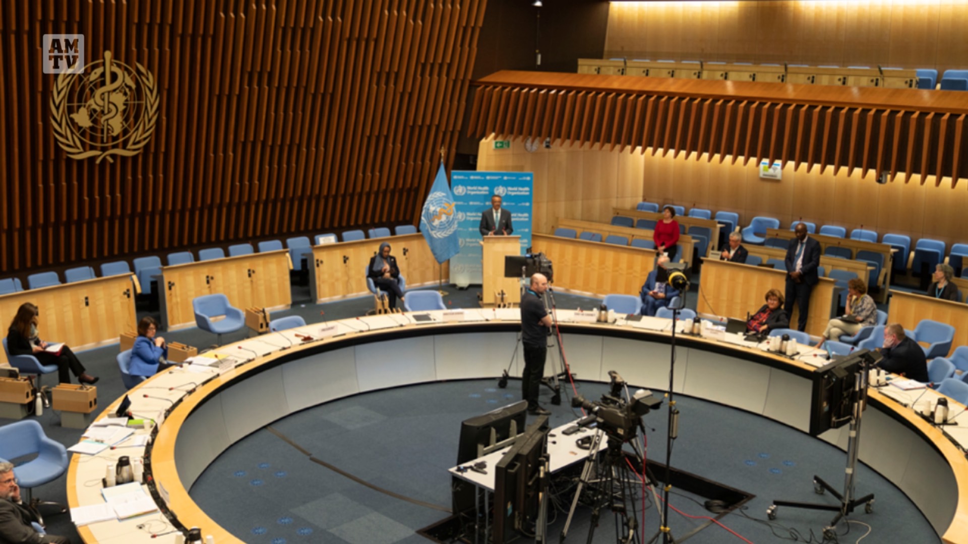 世卫组织总干事谭德塞向大会报告了世卫组织协调、领导国际抗击新冠肺炎疫情的情况,指出必须把公共卫生放在发展的中心位置,要建设一个更加健康、安全、公平的世界,建设一个更加强大的世卫组织。