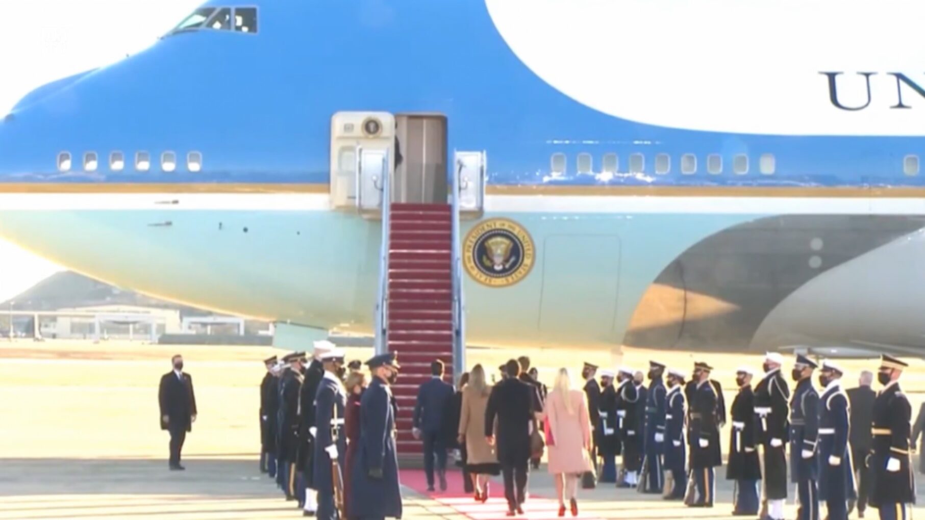 特朗普总统发表告别演讲后飞离华盛顿,特朗普时代结束