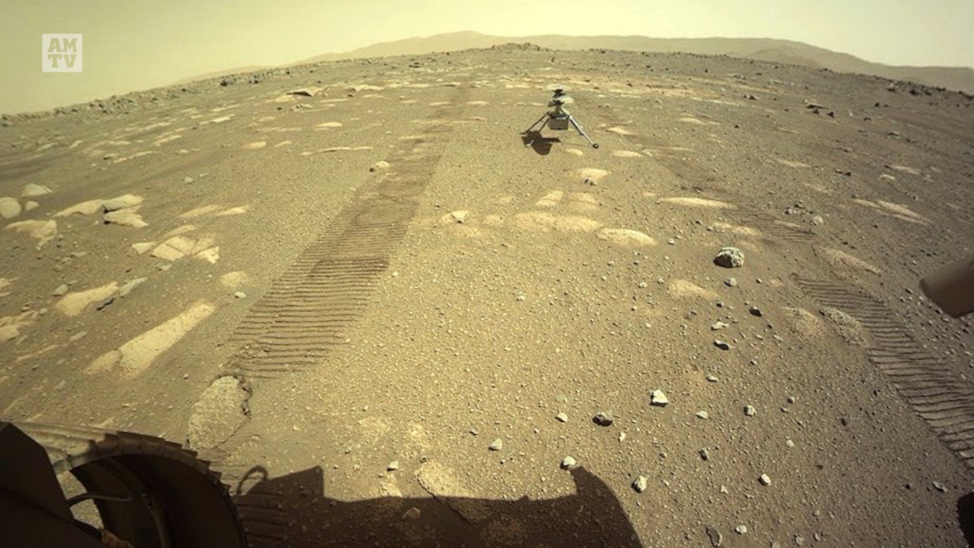 这条推文附带的一张照片显示,毅力号探测器在直升机降落后避开了直升机及其“机场”。