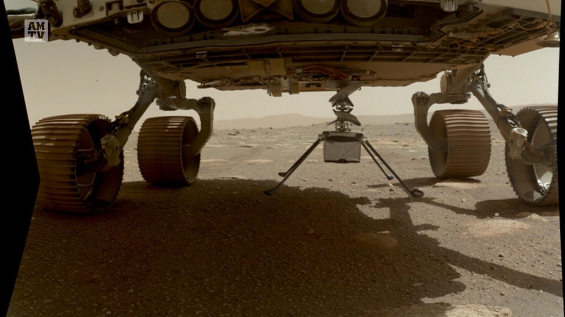 美国国家航空航天局(NASA)喷气推进实验室4月3日在推特上发文宣布,一架超轻型的聪明才智号(Ingenuity)迷你直升机已从毅力号(Perseverance)火星探测器上降落在火星表面,为首次飞行做准备。