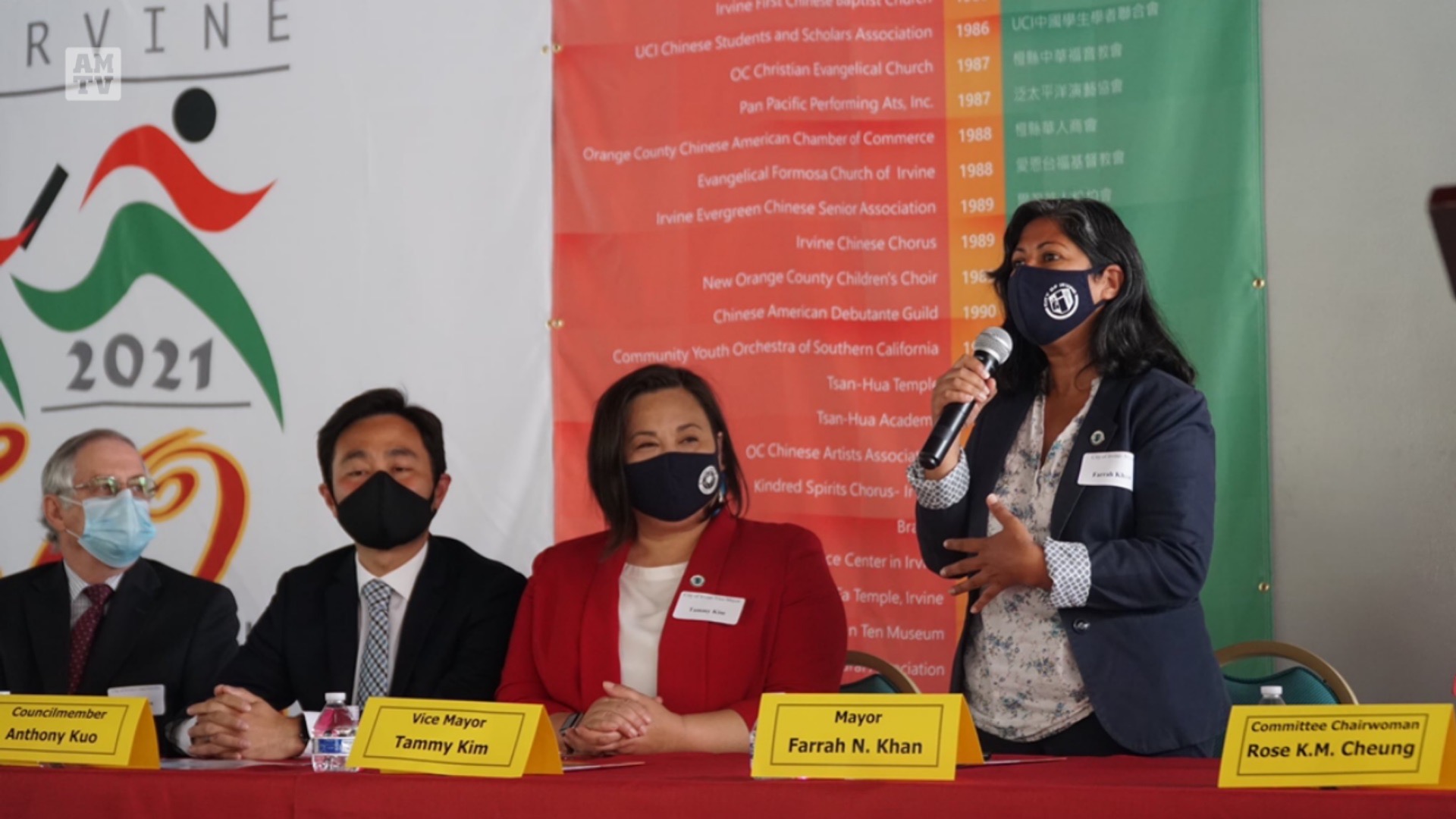 尔湾市长法拉·可汗 (Farrah Khan)、副市长泰米·金(Tammy Kim)、市议员安东尼·郭(Anthony Kuo)、迈克·卡罗尔(Mike Carroll)、拉里·艾格恩(Larry Agran)、市经理玛丽安娜·麦瑞西瓦(Marianna Marysheva)、警长迈克·哈默尔 (Mike Hamel)、尔湾学区教委保罗·巴科塔(Paul Bakota)、劳伦·布鲁克斯 (Lauren Brooks)、艾兰·格拉斯凯(Ira Glasky)、莎朗·沃林(Sharon Wallin)及学区总监特里·沃克(Terry Walker),均在会中发言赞扬南海岸中华文化中心整理华裔地方历史的创举,并表达市府及学区全力支持亚裔的立场。