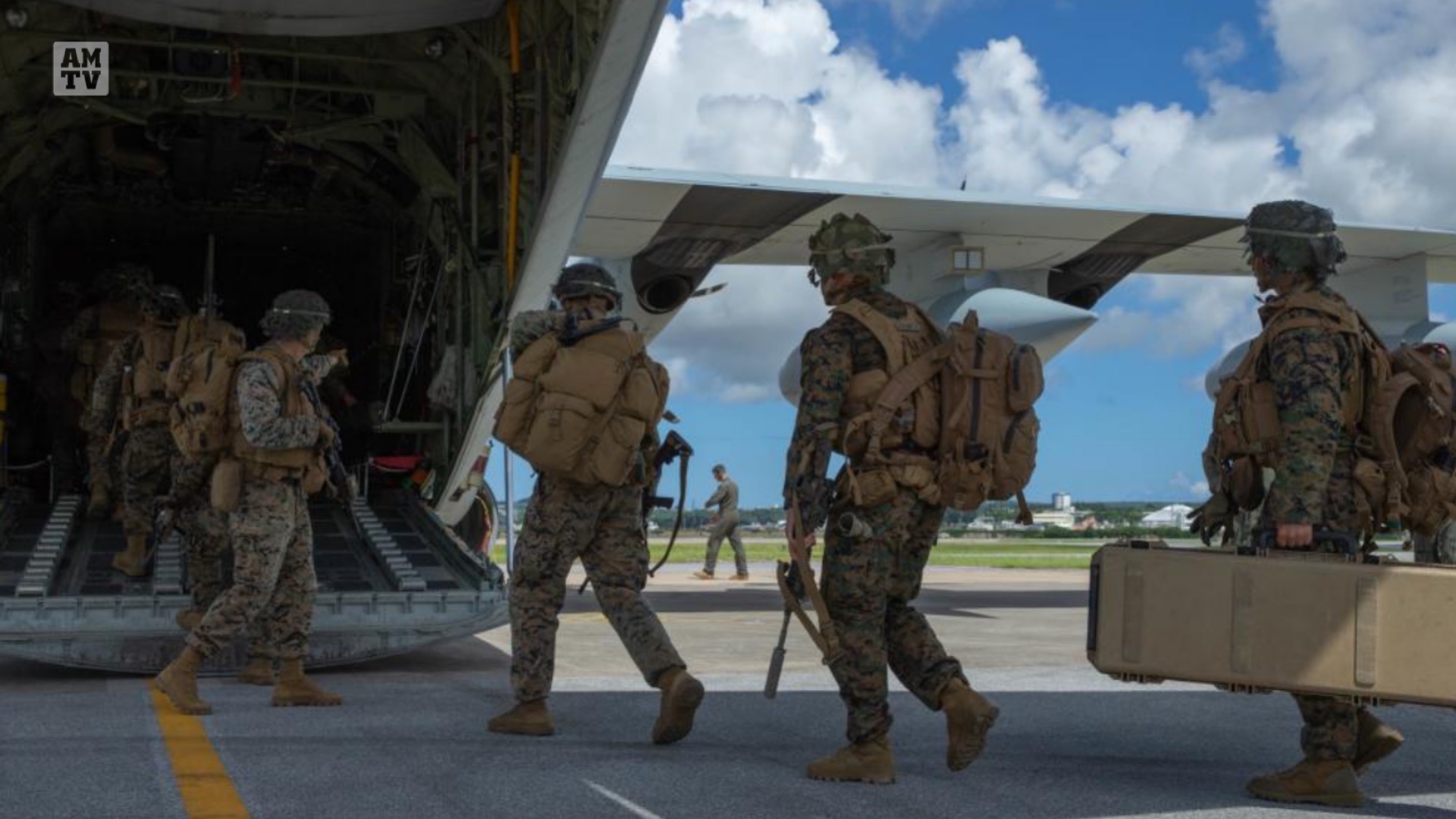 全美电视9月4日报道,美国海军陆战队今天发自冲绳的最新消息说,美国海军陆战队第3陆战师第3远征部队2营,今天在日本冲绳准备登上海军陆战队第一飞机联队的KC-130J超级大力神运输机,同时在日本第一岛链内再次进行快速反应演习。
