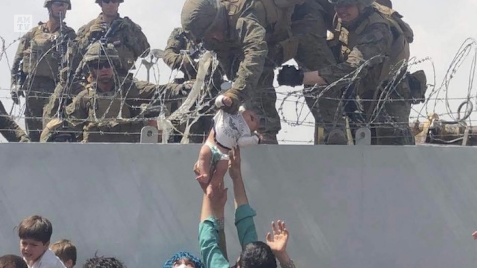 乔治亚州佩里9月25日讯,美国前总统特朗普今天在当地的一场大型政治集会上,高度赞扬了一名美军人士兵,并请他登台亮相。这名美军士兵被拍到在保卫阿富汗喀布尔机场撤离时,把一名阿富汗婴儿提上了铁丝网高墙,此照片在世界各地流传。