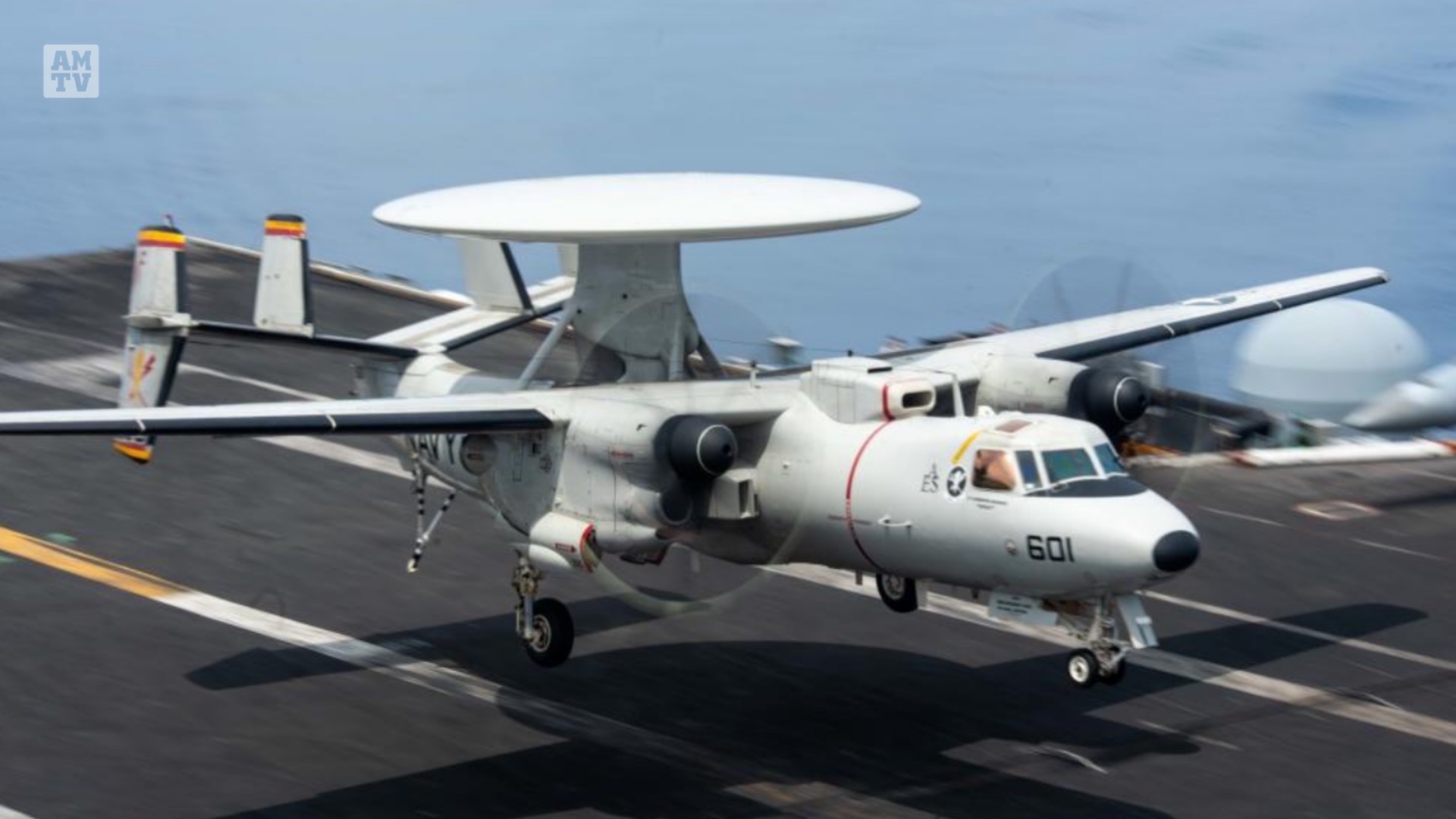9月25日,搭载在里根号航母上的机载预警125中队“虎尾”(Tiger Tails)上的一架E-2D“鹰眼”(E-2D Hawkeye)飞机正在降落。