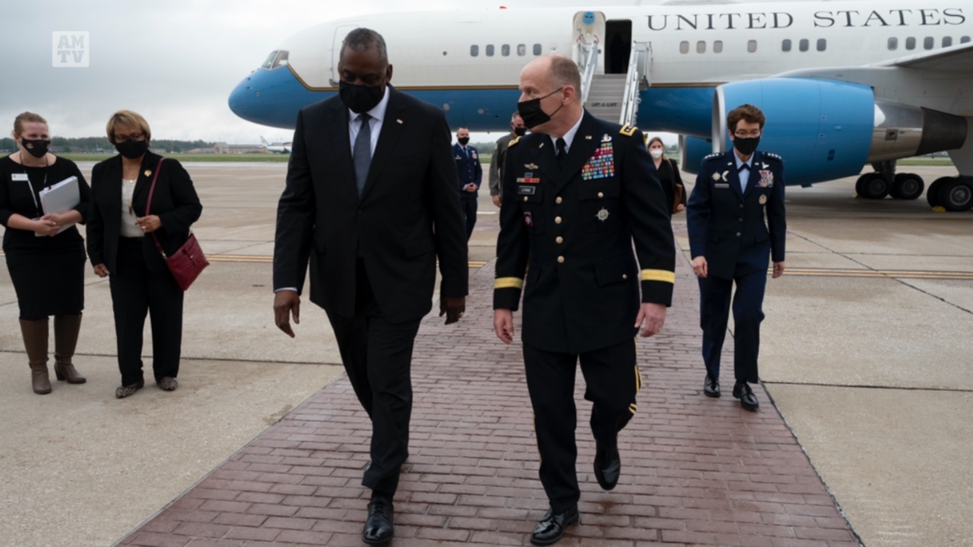 奥斯汀部长10月15日抵达斯科特空军基地,和即将离任的美国运输司令部司令、陆军上将斯蒂芬·莱昂斯(Stephen R. Lyons)交谈。奥斯汀此行抵达伊利诺斯州,主持美军运输司令部司令交接,空军上将杰奎琳·范·奥沃斯特(Jacqueline Van Ovost)接管了这个全球联合组织。