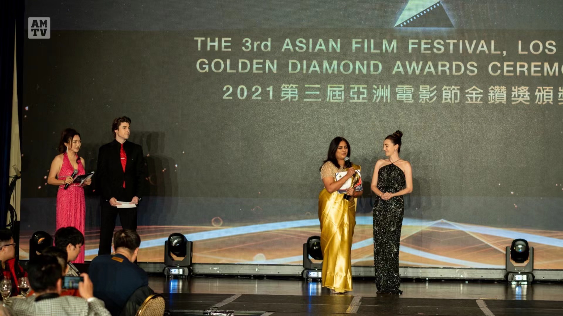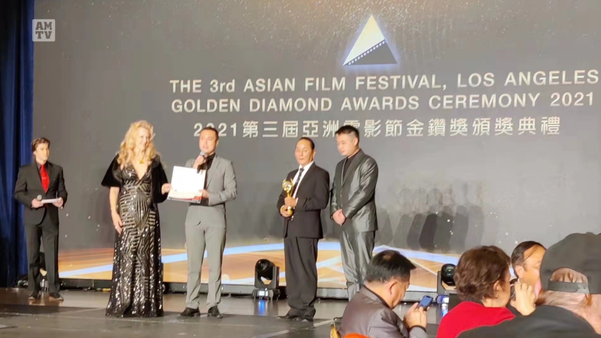 AFF亚洲电影节主席霍姆斯·斯托纳(Holmes Stoner )、AFF亚洲电影节共同主办利兹·莱顿(Leith Enron ),美国国际商会(AICC)行政总裁、会长英格·萨沃塔尔(Inge Sawerthal),奥斯卡金像得主、艾美奖得主理查德·安德森(Richard Anderson),前美国教育部助理副部长张曼君(Mariana Tse),以及亚洲电影节评委代表安伯·马丁内斯(Amber Martinez)和弗朗西斯卡·德罗米(Francesca Gioia Drommi)等颁奖嘉宾,在今天金钻奖颁奖盛典的舞台上给最佳影片奖、最佳纪录片奖、最佳动画片奖获得导演,以及最佳新导演奖最佳新秀、最佳儿童演员奖、最佳儿童女演员奖分别颁发金钻奖奖杯和证书。