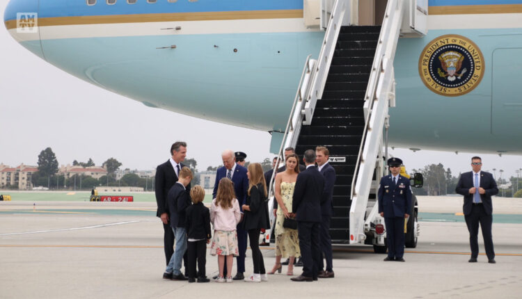 全美电视6月8日洛杉矶报道,拜登总统今天飞抵加州洛杉矶出席第九届美洲国家峰会(Summit of the Americas)开幕式,拜登总统在机场受到了加州州长纽森和洛杉矶市长加希提的迎接。