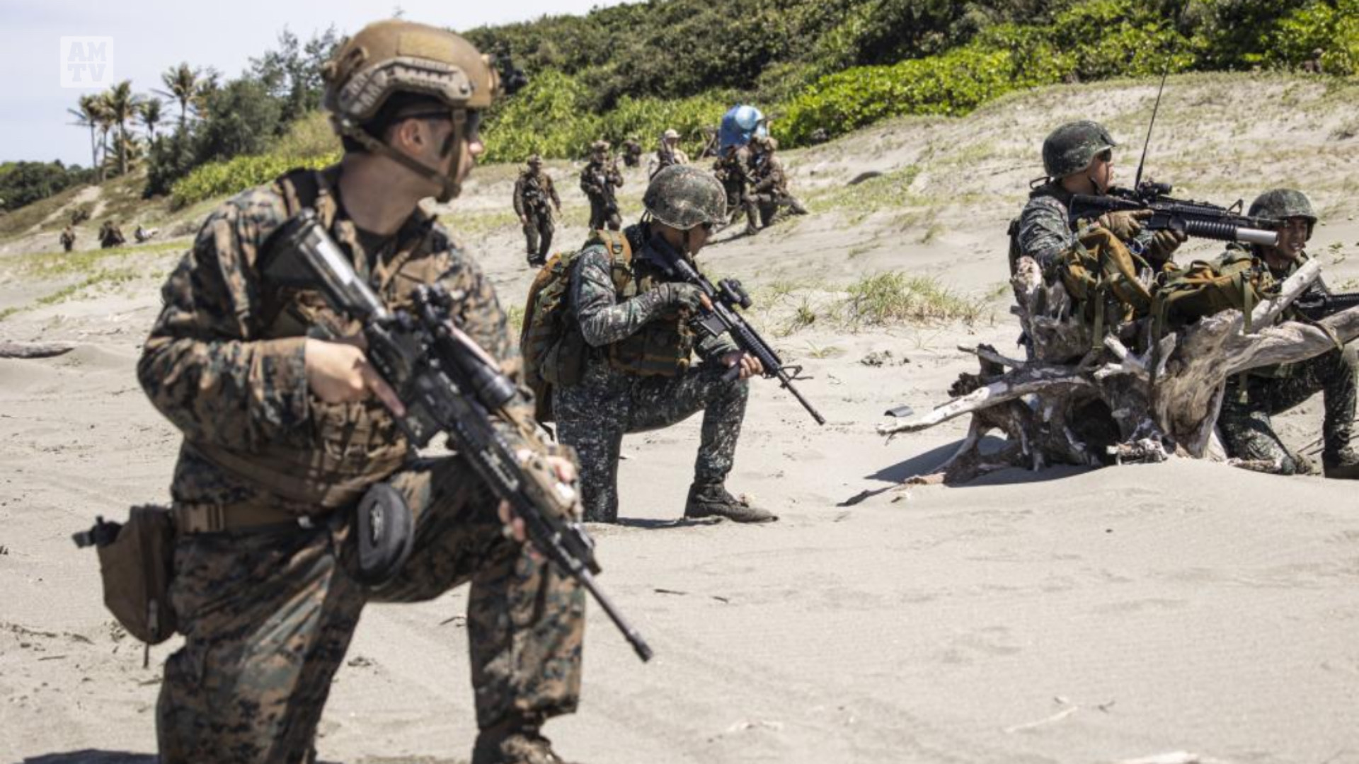 全美电视菲律宾海10月7日消息,美国海军陆战队今天与韩国,日本和菲律宾三国部队在菲律宾桑巴莱斯省(Zambales)的一个无人海滩进行了卡曼达格 (KAMANDAG)联合军事演习。