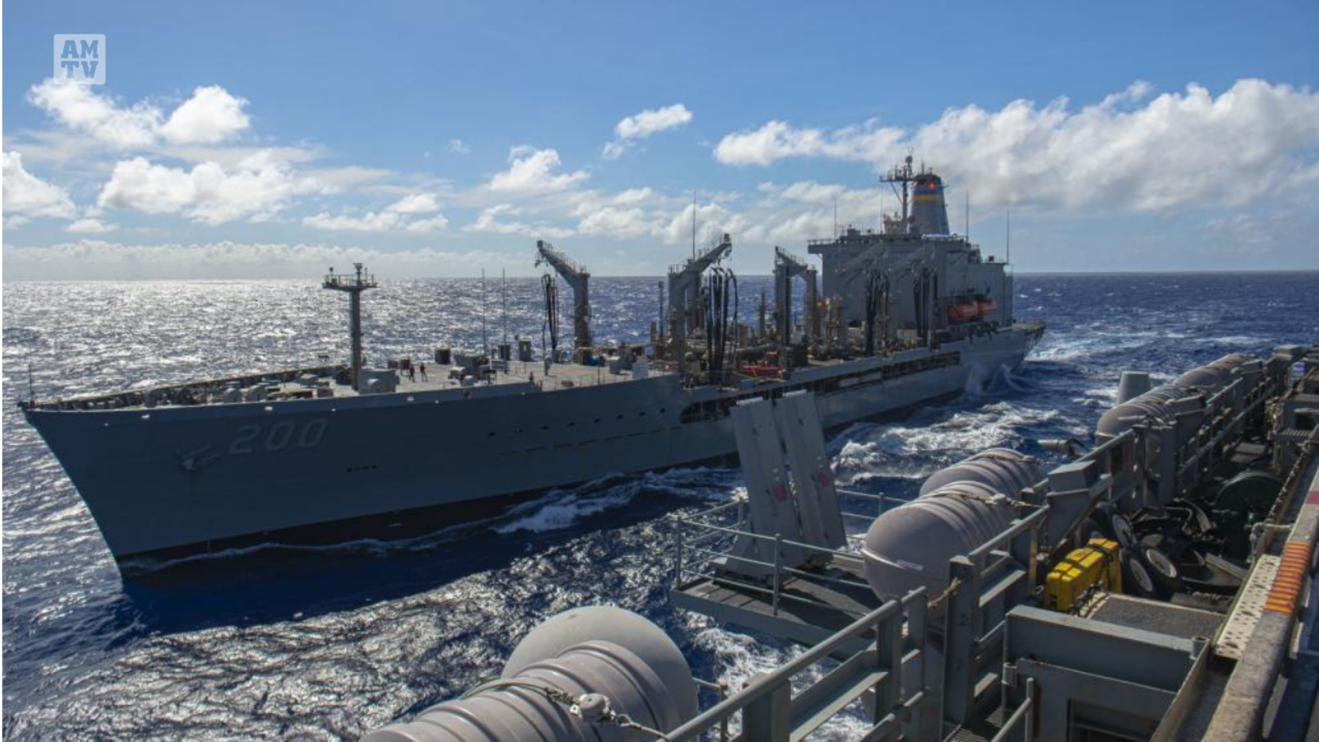 全美电视菲律宾海消息,2022年12月31日,美国海军补给舰瓜达卢佩号(T-AO-200)在菲律宾海航行中,正在给第七舰队执行例行任务的凯撒级核动力尼米兹号航母(CVN 68)补给加油。