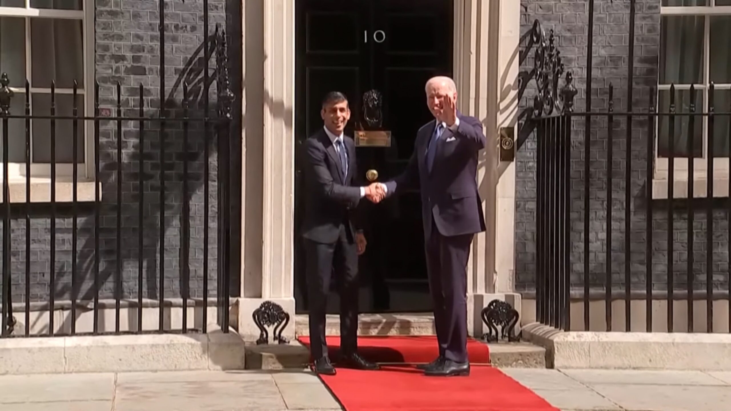 全美电视7月10日伦敦报道,今天上午,拜登总统在伦敦唐宁街10号外会见了英国首相苏纳克(Rishi Sunak)。拜登和苏纳克今年6月刚在美国白宫会面,当时双方讨论了乌克兰、气候变化和其他问题。