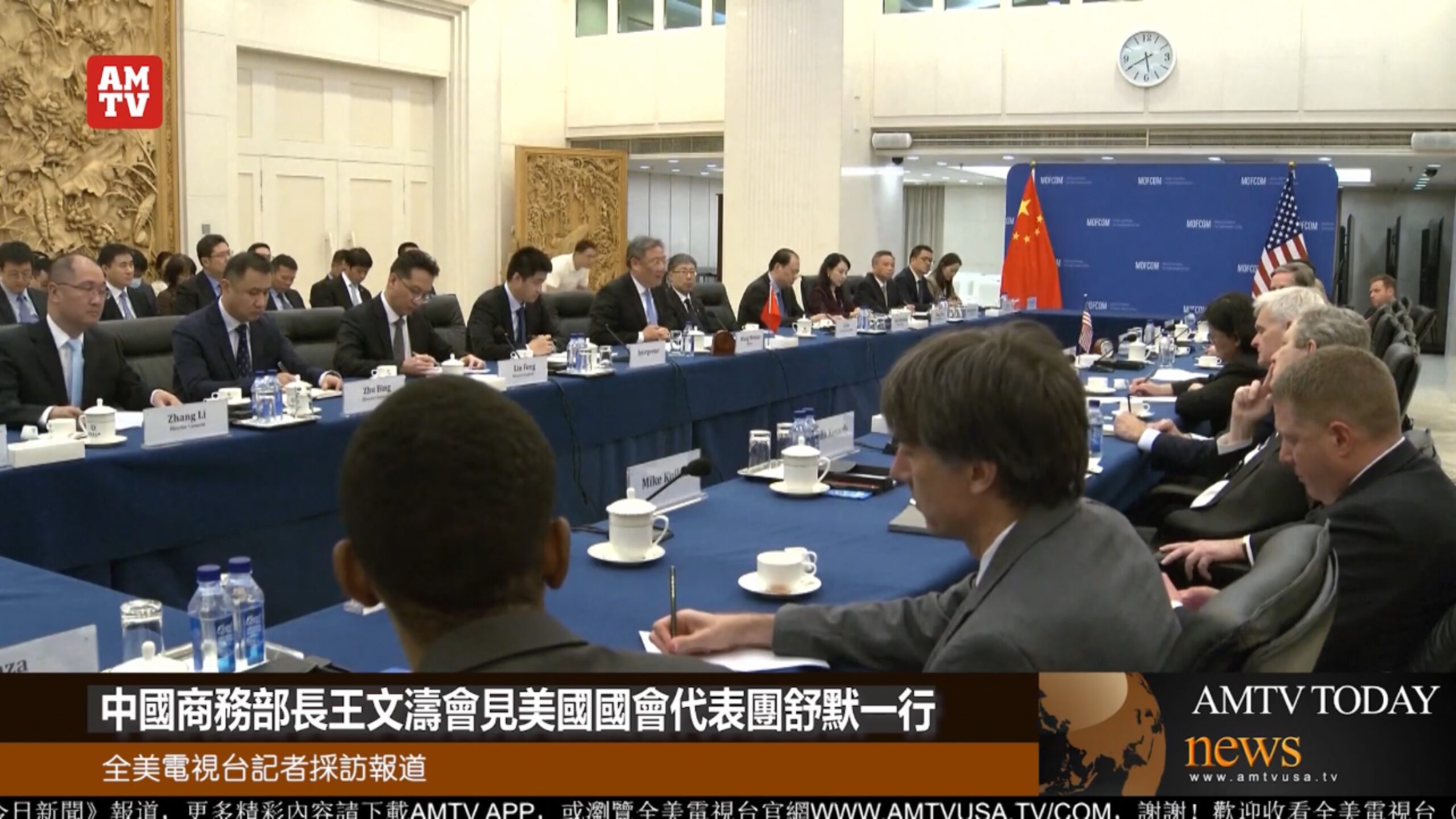 全美电视10月9日北京报道,中国商务部部长王文涛今天在北京会见美国国会参议院多数党领袖舒默率领的美国国会参议院两党代表团。双方就中美经贸关系和共同关心的经贸问题进行了理性、务实的讨论。
