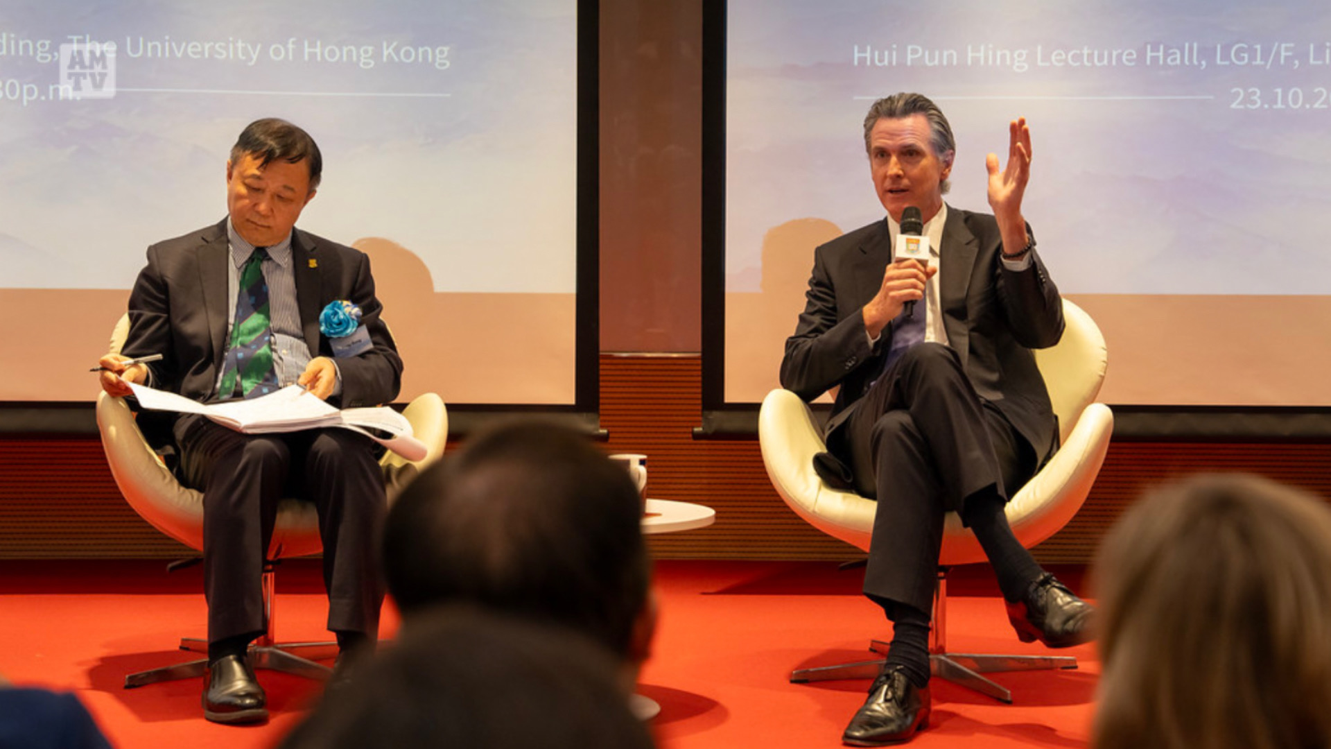 纽森在香港大学,向教师、学生及私营机构领袖发表演讲时,谈到香港和加州所面临的严峻气候现实,以及两地如何在应对气候危机方面发挥领导作用。