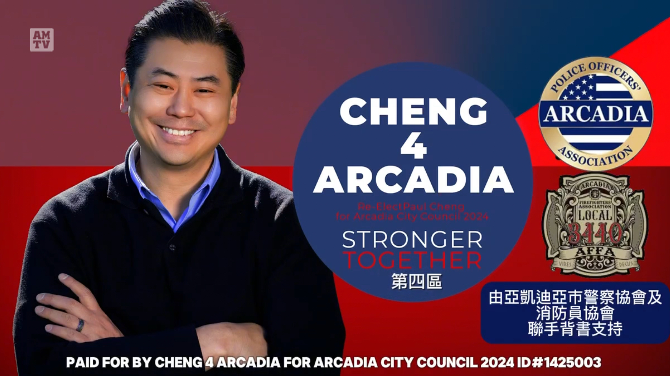 全美电视8月17日亚凯迪亚市报道,前亚凯迪亚市市长、现任市议员郑博仁(Paul Cheng)律师,今年初正式宣布竞选连任亚凯迪亚市市议会第4区市议员。