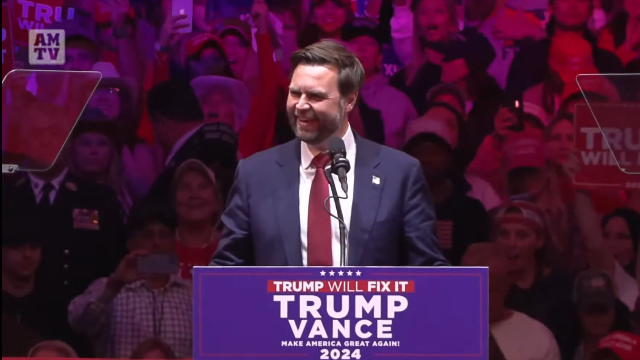 出席今天集会的共和党副总统候选人、共和党参议员万斯(JD Vance)力挺特朗普的总统政纲及竞选言论。万斯在纽约市麦迪逊广场花园举行的特朗普集会上发言评击哈里斯时说:“你没想到我会如此两党合作,但我会为卡玛拉说,每次她接受采访,我认为特朗普都会获得大约10万张选票。”。
