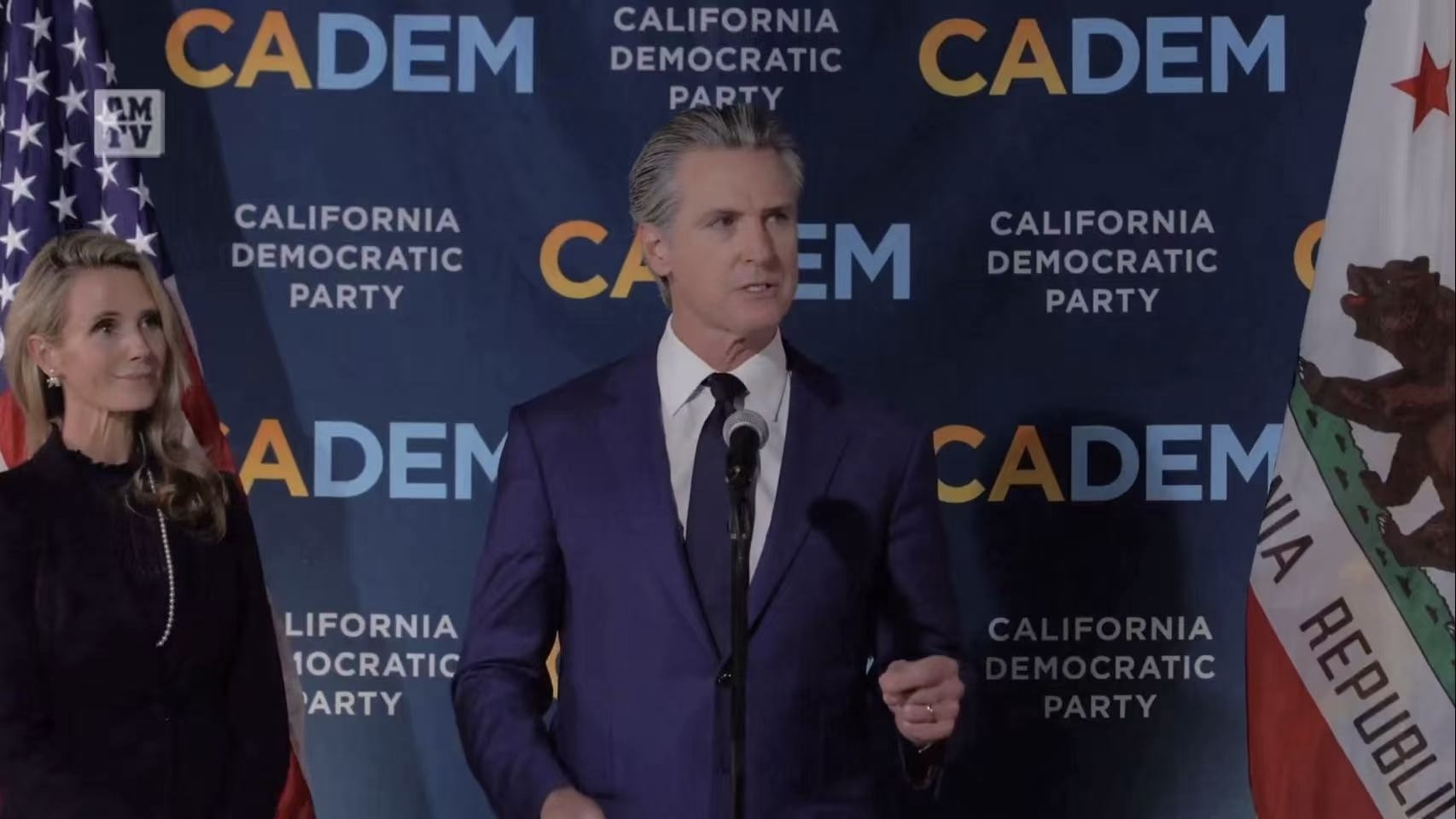 纽森在妻子詹妮弗(Jennifer Siebel Newsom)陪同下发表了胜选演讲,他毫不掩饰地再次抨击特朗普总统说:“我们为加州人民今晚所做的工作感到自豪,他们向这位具有历史意义的总统发出了强有力的信息,特朗普是一位具有历史意义的总统。他是现代史上最不受欢迎的总统。”