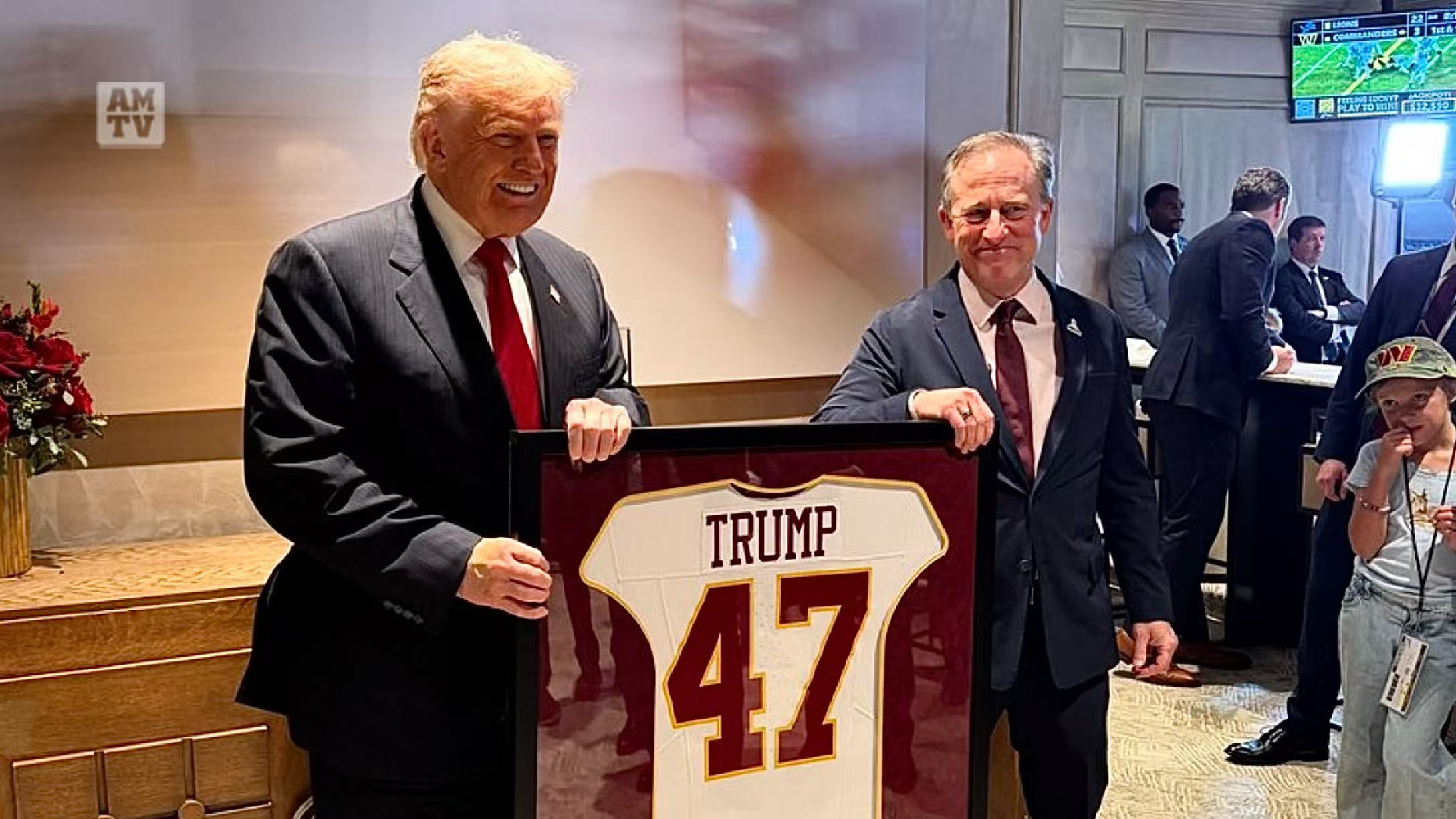 11月9日报道,美国总统特朗普今天成为近半个世纪以来首位现场观看美国国家橄榄球联盟(NFL)常规赛的在任总统,他观看了华盛顿指挥官队(Washington Commanders)对阵底特律雄狮队(Detroit Lions)的部分比赛。华盛顿指挥官队老板哈里斯(Josh Harris)赠送给特朗普总统一件47号球衣。