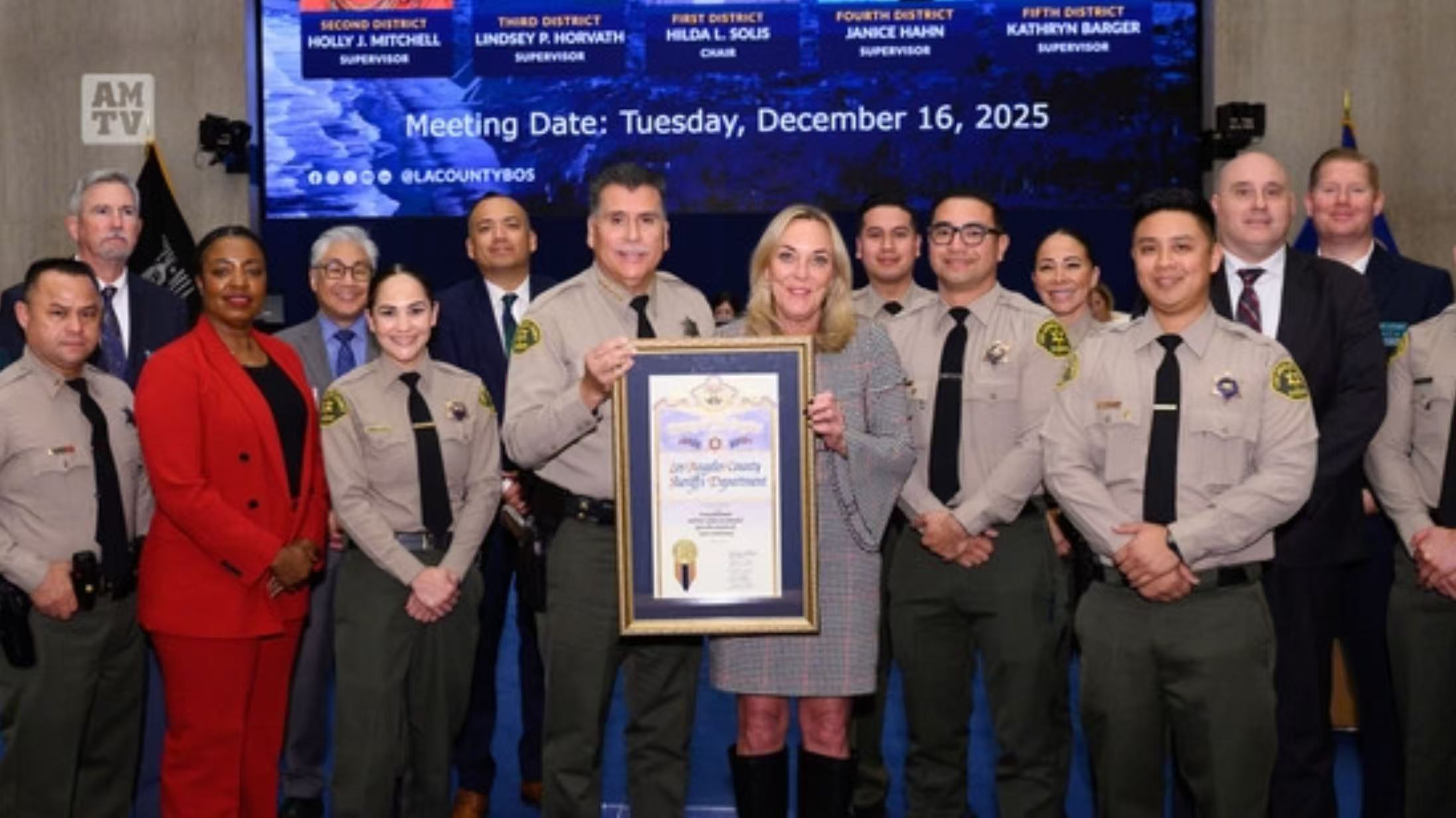 AMTV, LOS ANGELES Dec 16 – Today, Los Angeles County Supervisor Kathryn Barger presented a commemorative scroll to the Los Angeles County Sheriff’s Department in recognition of its 175th Anniversary during the Board of Supervisors’ Public Hearing meeting at the Kenneth Hahn Hall of Administration.