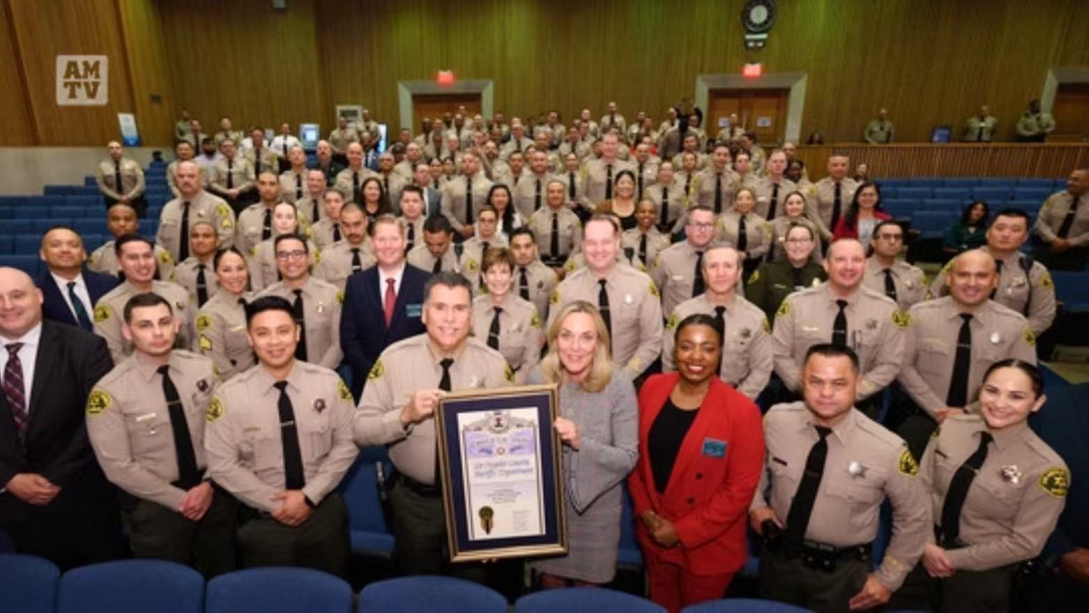 AMTV, LOS ANGELES Dec 16 – Today, Los Angeles County Supervisor Kathryn Barger presented a commemorative scroll to the Los Angeles County Sheriff’s Department in recognition of its 175th Anniversary during the Board of Supervisors’ Public Hearing meeting at the Kenneth Hahn Hall of Administration.