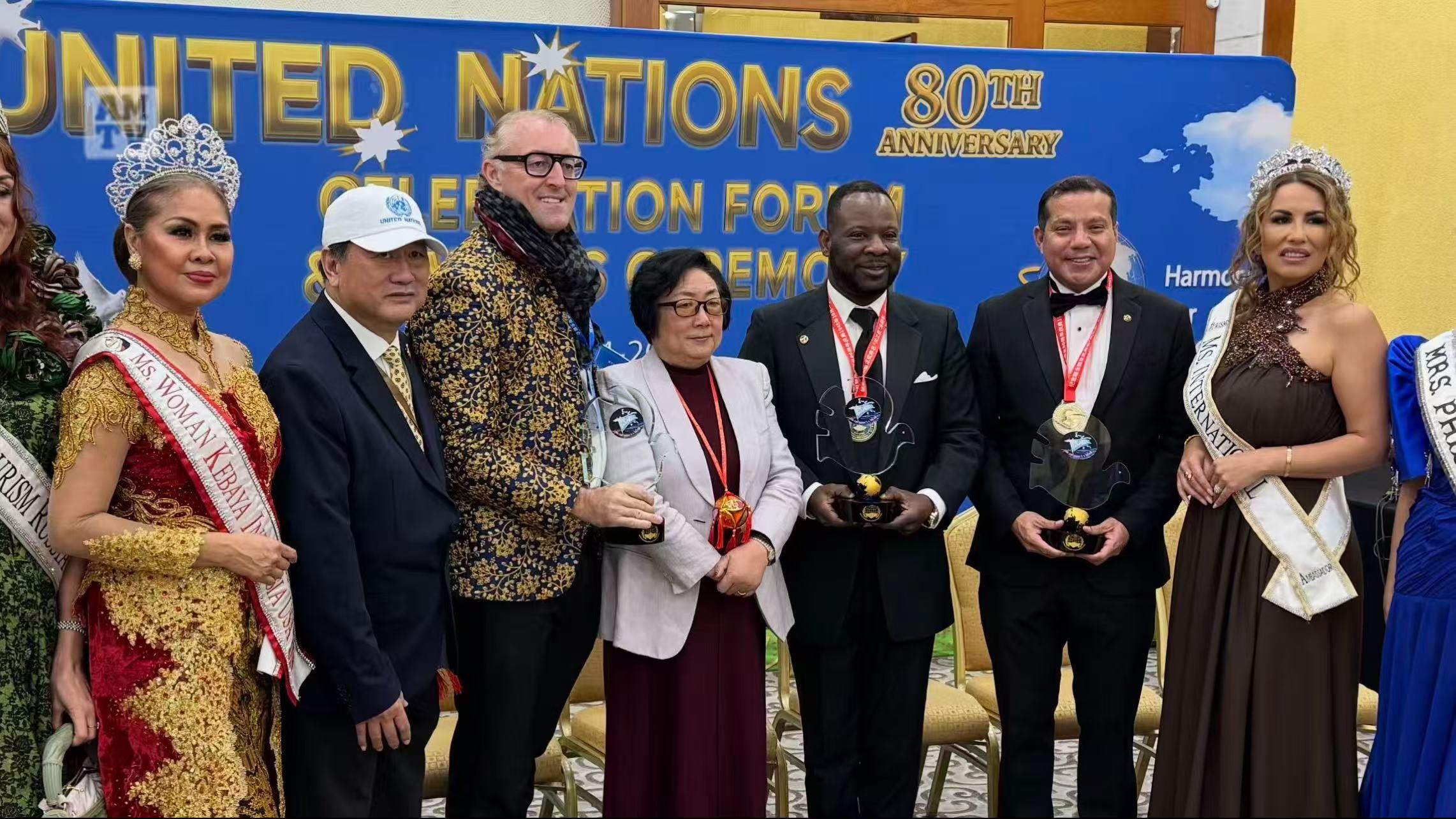 联合国80周年庆典非政府组委会与来自五大洲的联合国大使、政要、民间组织领袖、科学家等今天在联合国总部欢聚一堂,并发起“全球可持续地球家园示范范例”评选行动并组成组委会。