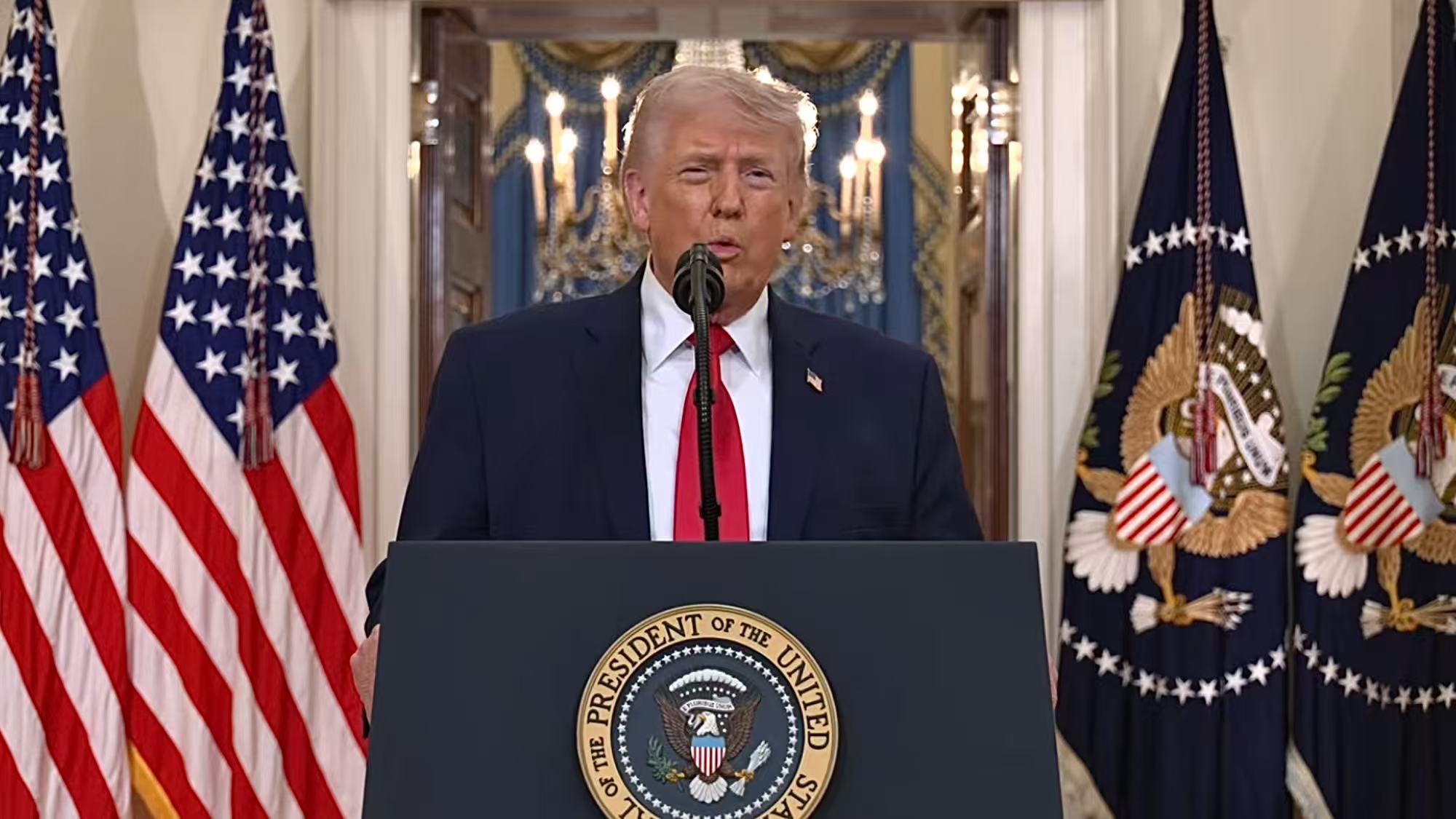 特朗普总统声称:“在过去的四周里,我们的武装部队在战场上取得了迅速、果断、压倒性的胜利,这是鲜有人见过的胜利。”